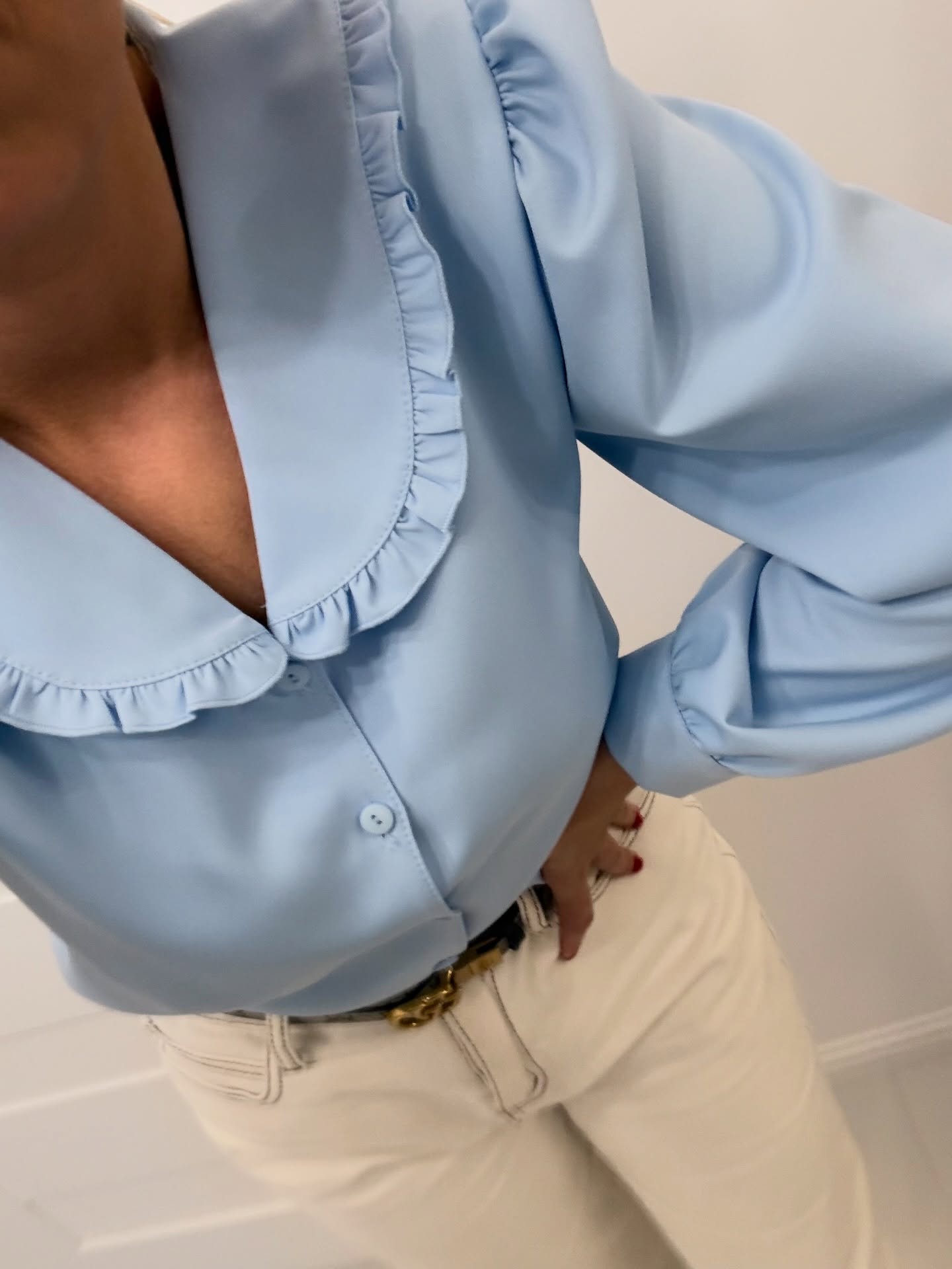 Błękitny kolor wprowadza świeżość i sprawia, że koszula doskonale sprawdzi się zarówno w stylizacjach biurowych, jak i codziennych – z jeansami, eleganckimi spodniami czy spódnicą.